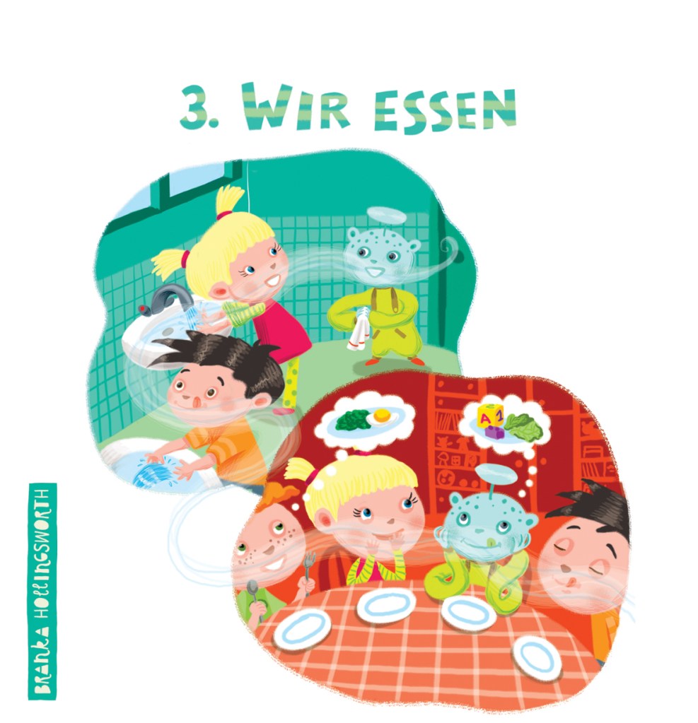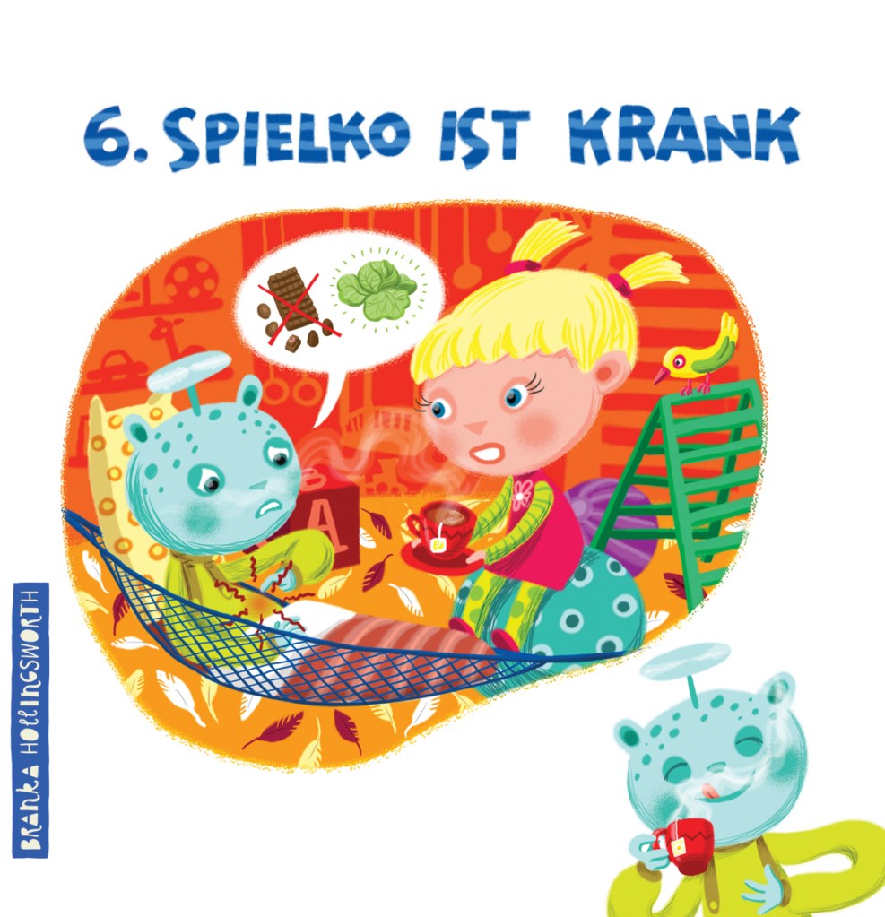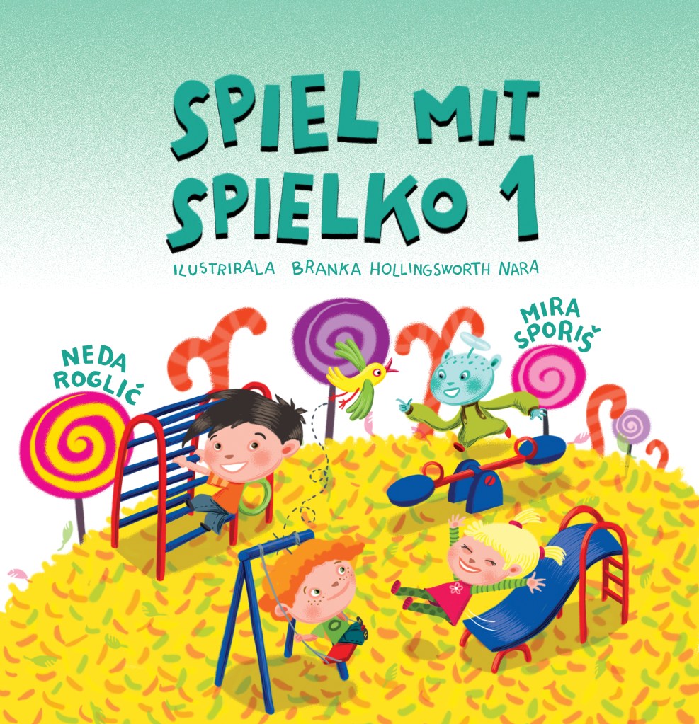 U početku ilustratorske karijere radila sam puno udžbenika, a jedan od najdražih mi je bio ovaj mali udžbenik SPIEL MIT SPIELKO 1, za učanje njemačkog jezika za predškolski uzrast. Drag mi je zbog toga što ilustracije i tekst čine harmoničnu cjelinu, a pri tome je zadržana jednostavnost i jasnoća ideje i namjere autorica Nede Roglić i Mire Sporiš. Na Zemlju (u Njemačku:) slijeće vanzemaljac Spielko koji upoznaje troje djece s kojima postaje prijatelj. Djeca ga uče jeziku kroz svakodnevne situacije…