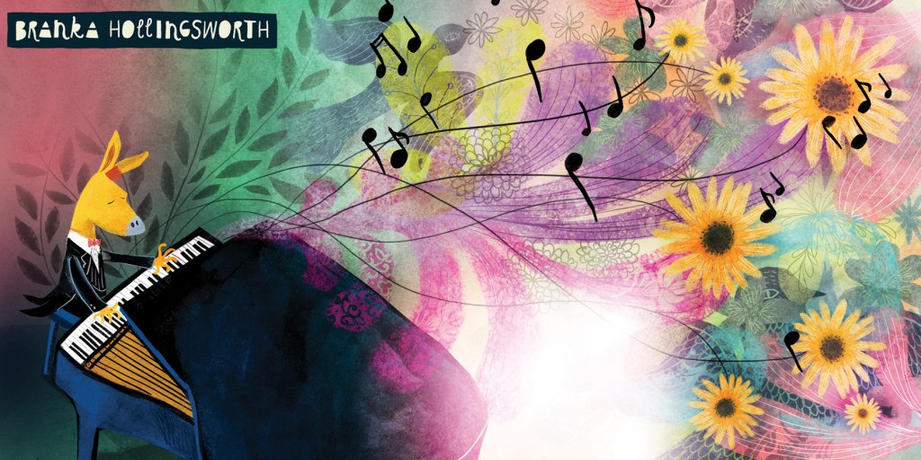 Ilustracija iz knjige Pijanist mago Drago, Marijane Križanić, Iris Illyrica 2021.